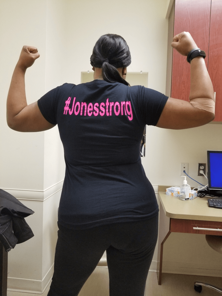 Chemotherapy wasn’t what I imagined because I never imagined having cancer and having to fight for my life. I kept telling myself, it could be worse and this is something I just have to go through, but the key was to get through it. To get through it, I prayed, thought positively and laughed…laughed even when I didn’t feel like laughing. Jones Strong.