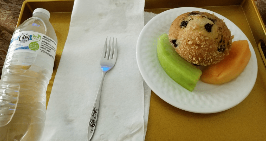 The morning after. I made it through surgery, breast still in tact…including my nipple. It was time to heal, and my mommy made sure I was getting my strength back by ensuring I had 3 meals a day…starting with breakfast.